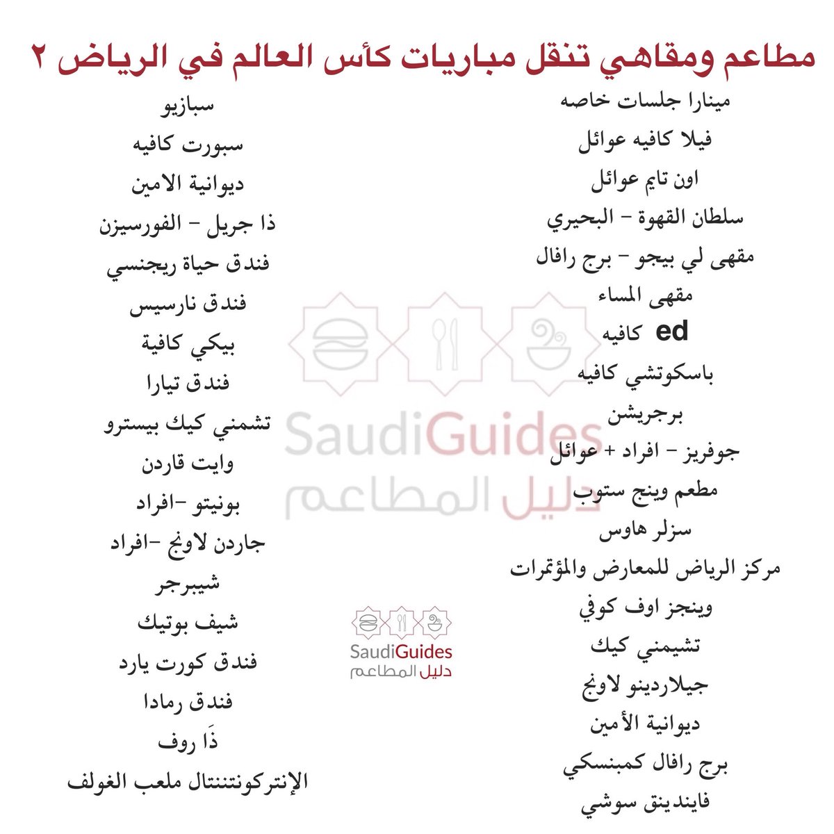 دليل المطاعم Saudiguides Na Tviteru مطاعم ومقاهي تنقل مباريات كأس العالم في الرياض