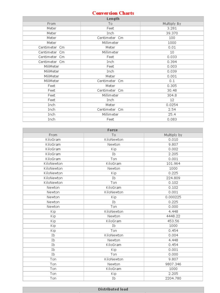 جداول تحويل الوحدات