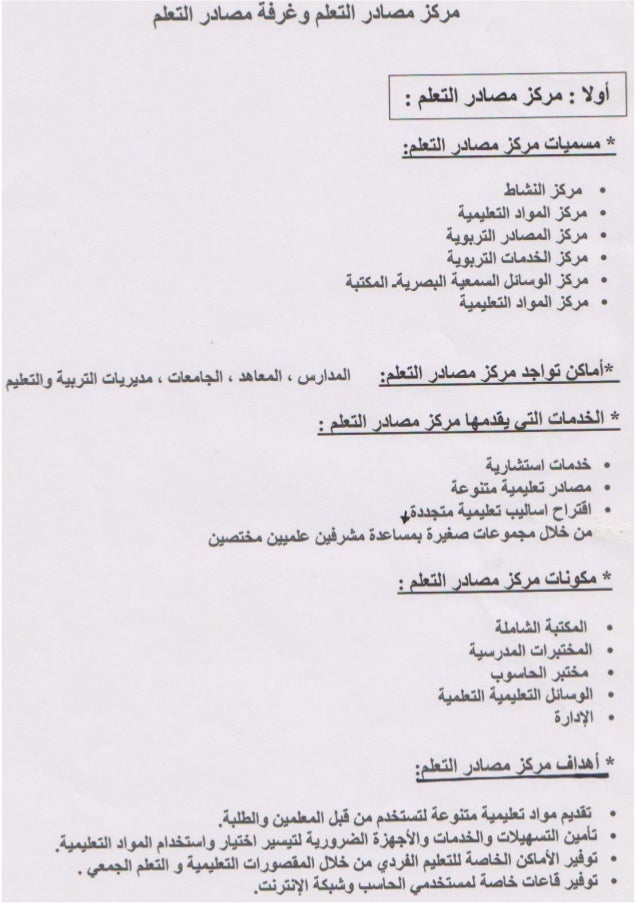 تقرير عن مصادر التعلم. تقرير مركز مصادر التعلم بمدرسة عبدالله بن عباس 1. مرسلة بواسطة moslehaziz في 11 45 م ليست هناك تعليقات. ماذا تعرف عن مركز مصادر التعلم zakiya71. نبذة تعريفية عن مراكز مصادر التعلم ما هو مركز مصادر التعلم هو عبارة عن نظام متكامل أو تصميم معين لبيئة متكاملة تتبع مؤسسة تعليمية المدرسة ويسعى إلى تحقيق أهدافا معينة من خلال القيام بمجموعة من الوظائف والعمليات.
