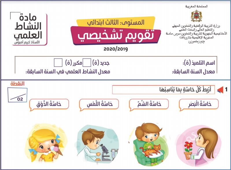 رائز التقويم التشخيصي لمادة النشاط العلمي المستوى الثالث